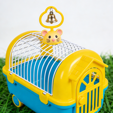 Mar a thaispeántar san íomhá cage peataí gorm-buí, atá deartha go sonrach do pheataí beaga, ina bhfuil maisiú ceann luch gleoite agus clog óir. Praghas mórdhíola $12-15/aonad (bunaithe ar MOQ), íosordú 100 aonad, ag tacú le saincheapadh feidhm agus lipéadú príobháideach.